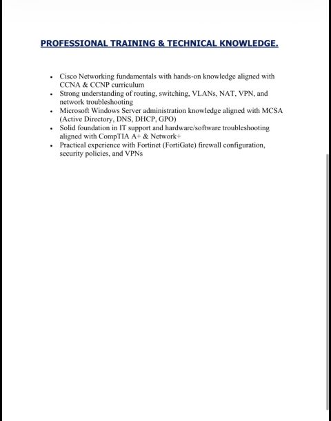 I am currently looking for a job opportunity in the field of systems and network management or an IT specialist within the Kingdom of Saudi Arabia. I have more than 3 years of experience in managing infrastructure and supporting actual work environments, and I have worked with government agencies and the private sector in different regions of the Kingdom