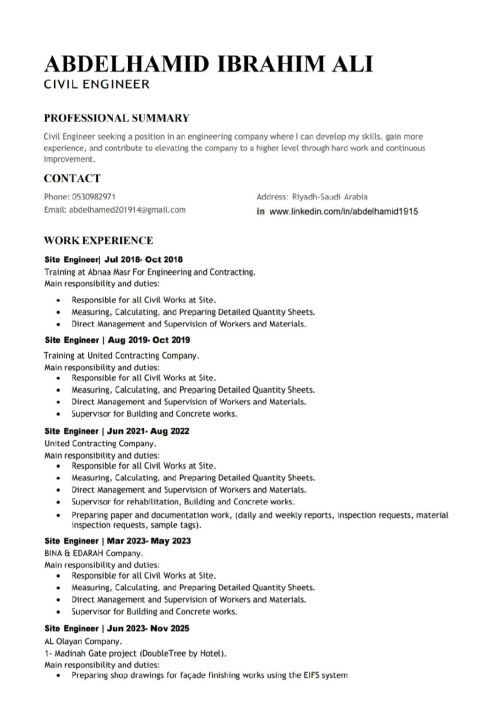 مهندس مدني مصري خبرة + 5 في التنفيذ واستلام أعمال الخرسانات والتشطيبات أجيد استخدام برامج AutoCAD وSap وSafe وETABS وMicrosoft office ابحث عن فرصة عمل في أي مكان داخل المملكة يوجد إقامة سارية وامكانية نقل الكفالة ويوجد رخصة سير سارية