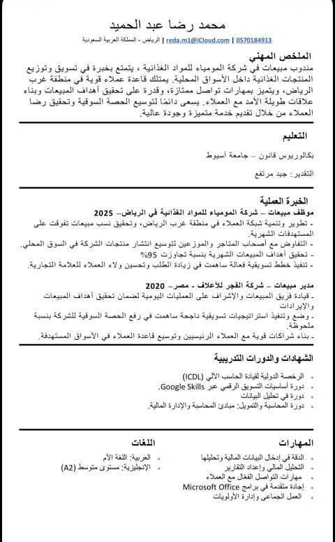 مندوب مبيعات مواد غذائية جاهز للتعاون اعمل مندوب مبيعات في مجال المواد الغذائية ولدي قاعدة عملاء قوية في مختلف المناطق. أتميز بالالتزام، وسرعة التوزيع، وخبرة ممتازة في التعامل مع العملاء وتغطية الأسواق. جاهز للتعاون مع الشركات والمصانع لتسويق وتوزيع منتجاتهم الغذائية بشكل احترافي