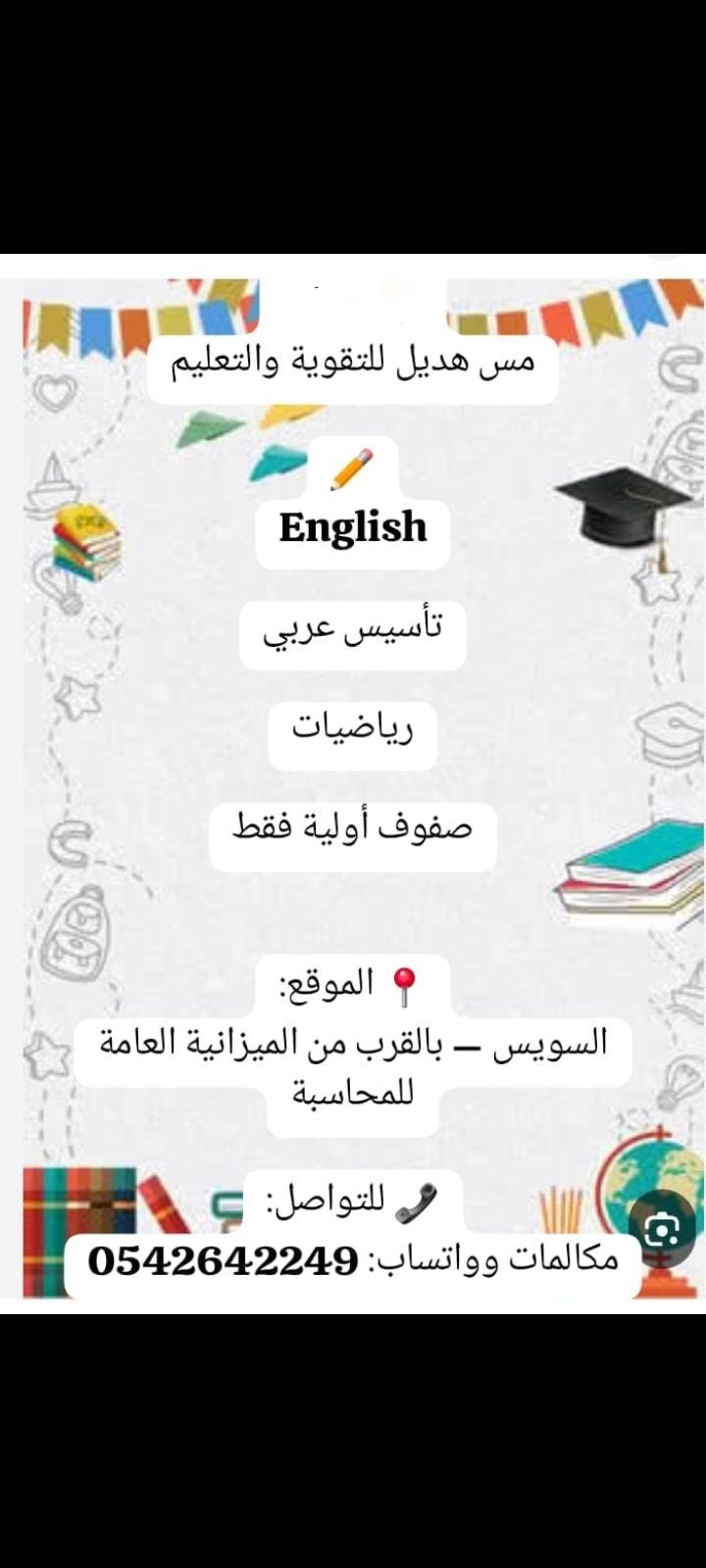 تأسيس ومتابعه، انجليزي ولغتي ورياضيات، بدرس ببيتي، جازان حي السويس بالقرب من الديوان العام للمحاسبه