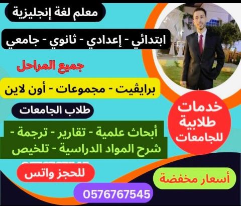 معلم لغة انجليزية لكل المراحل التعليمية ابتدائي ومتوسط وثانوي وجامعة بأسعار مناسبة جدا. للطلاب الجامعات (بنن وبنات) سعر الحصة 50 فقط أون لاين