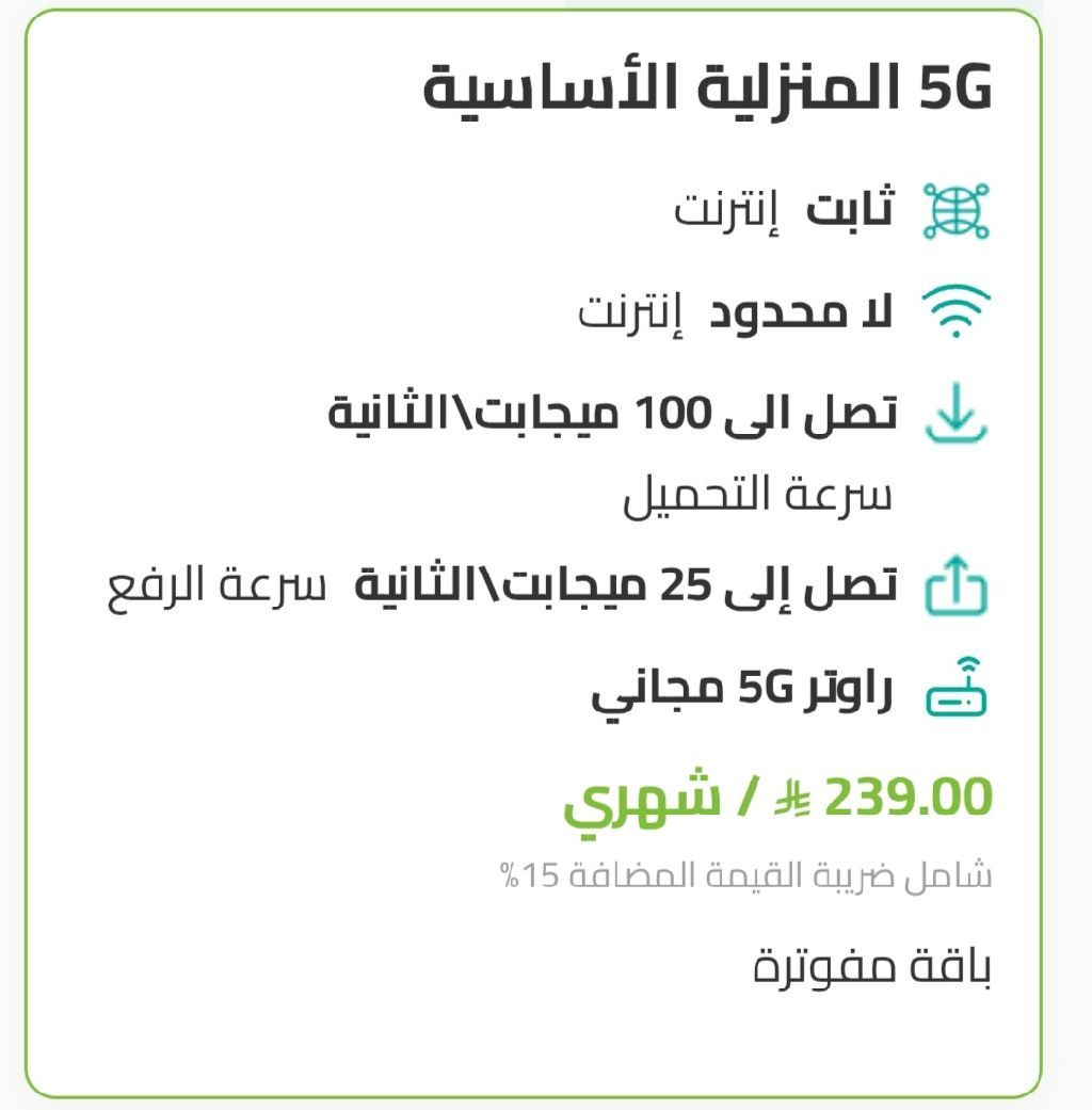 Eid Offers - Limited Time Home 5G Internet with Unlimited Access No upfront payment No deposit required Delivery & installation at your doorstep Speeds up to 500 Mbps + Unlimited 1 Free Month + 5G Router Delivery fee Only 50 SAR Order now before the offer ends