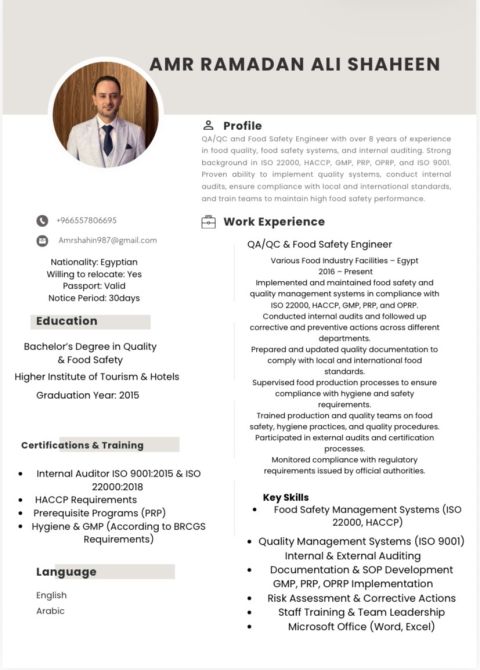 ابحث عن عمل مراقب جودة وسلامه غذاء موجود في الدمام