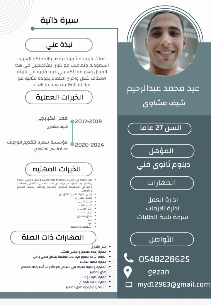 شيف مشويات شك وتتبيل وتشفيه لحوم لدي كارت صحي ساري