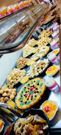 A pastry chef specializing in Eastern sweets, such as kunafa, basbousa, Turkish basbousa, lashatouta, basima, aziza, rawani al - Nuzha, all kinds of oils, biscuits, petit fours, barazek, kahk, and cookies