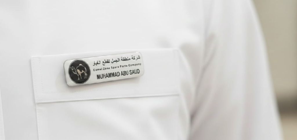 نوفر لكم بر وشات تعليق لوحة الاسم مع شعار الشركة بتصميم مميز وأنيق مزودة ب مغناطيس قوي للتثبيت على الملابس بدون إتلاف القماش مناسبة لجميع المحلات والشركات حسب الطلب (اسم - شعار - لون) جودة عالية ومظهر احترافي للتواصل والطلبات