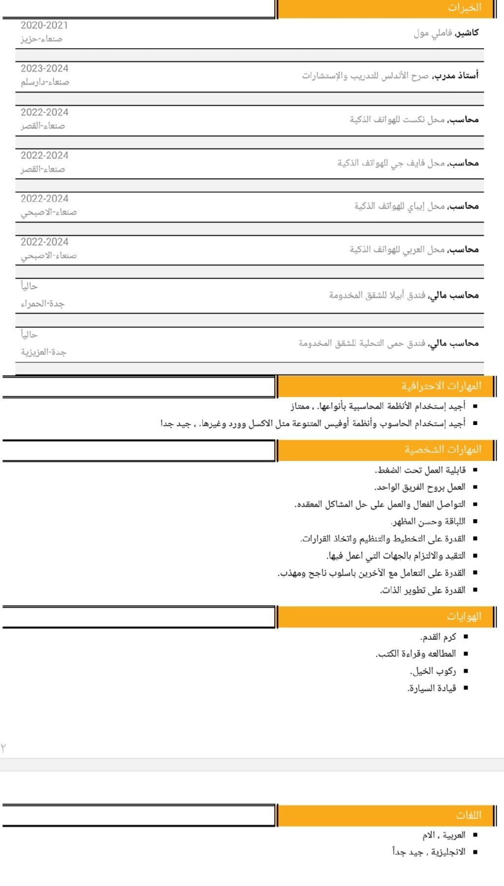 امتلك خبرة احترافية ممتازة في إدارة الحسابات واعداد وتحليل القوائم المالية وفقا لأحدث المعايير المحاسبية. لدي جاهزية كاملة للانضمام الفوري لضمان دقة البيانات المالية والامتثال التام للأنظمة. التزم بتحويل البيانات الى رؤى استراتيجية تدعم اتخاذ القرار وتساهم مباشرة في نمو وربحية الشركة. أتطلع بشغف لتوظيف مهاراتي في تعزيز الكفاءة المالية لفريقكم