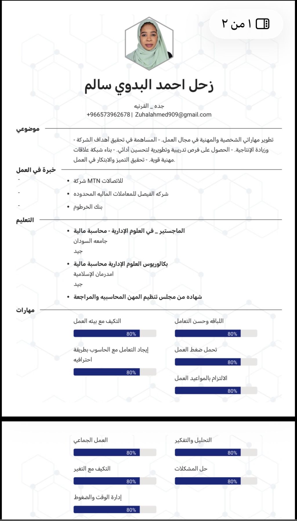 محاسبه سودانيه ابحث عن عمل في مجال المحاسبه والحسابات مقيمة في جدة ماجستير وبكالوريوس المحاسبه الماليه الخبرات العملية شركة الفيصل للمعاملات الماليه مساعد اوفيسر بنك الخرطوم شركة MTN للاتصالات رقم التواصل مكالمات