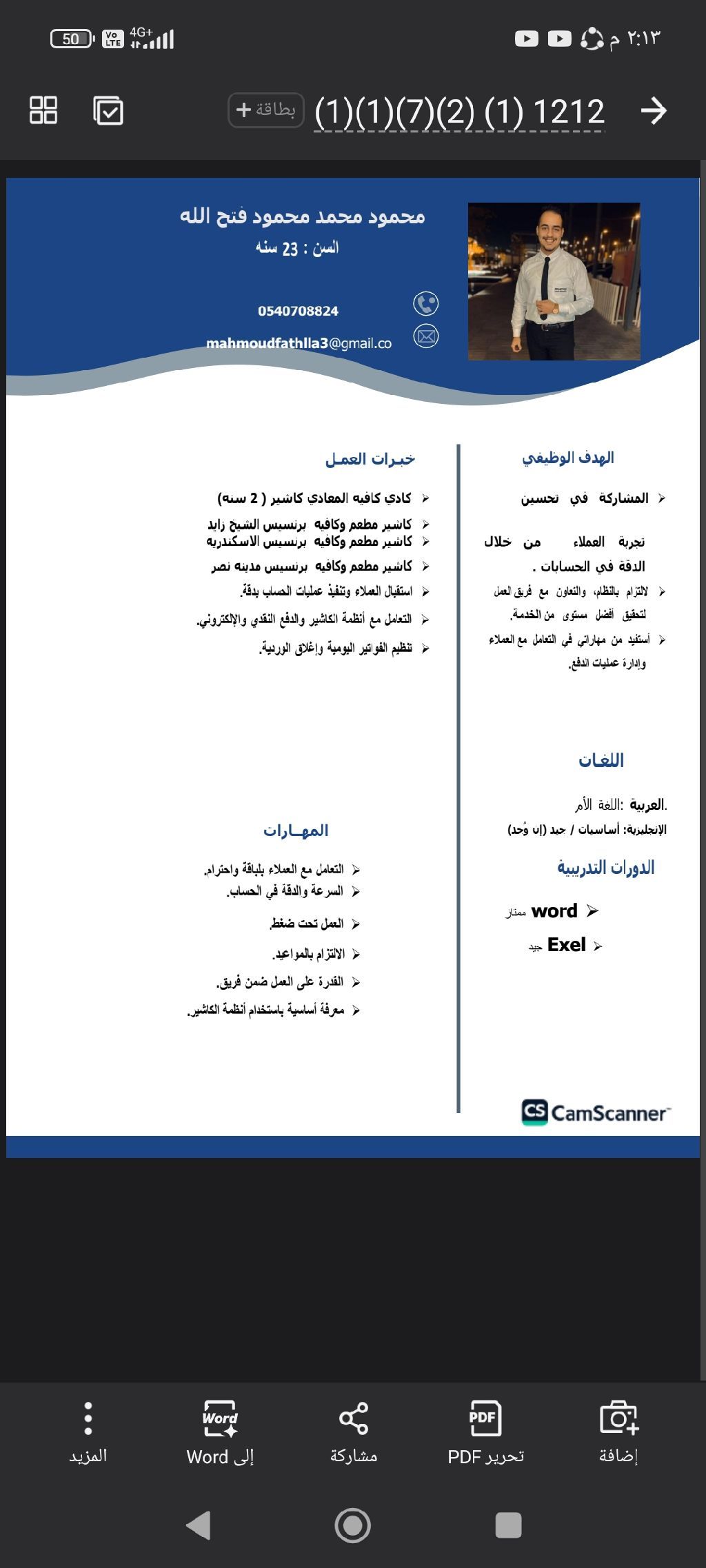 كاشير خبرة أكثر من 6 سنوات ومدخل بيانات سرعة ممتازة علي الكتابة علي الكومبيوتر