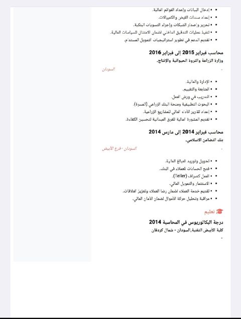 محاسب ومدير مالي سوداني الجنسية بخبرة 11 عاما داخل السعودية في الحسابات العامة والمراجعة الداخلية والتخطيط المالي وادارة الازمات