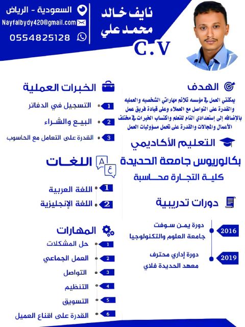 خريج محاسبة يمني، مقيم في السعودية، ابحث عن وظيفة محاسبة أو أي عمل آخر متاح حاليا. جاهز ابدأ فورا، ملتزم وجاد في العمل، سريع التعلم وأتحمل ضغط الشغل