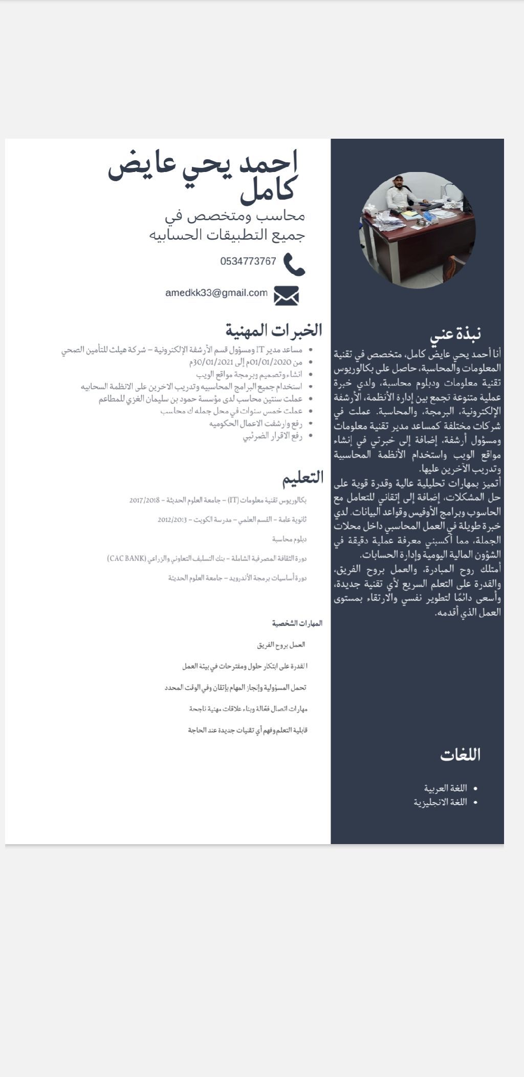 ابحث عن فرصة عمل مناسبة في مجال المحاسبة أو تقنية المعلومات (IT) وامتلك خبرة عملية تجمع بين المهارات المحاسبية والتقنية، مما يمكنني من أداء المهام بدقة وكفاءة عالية