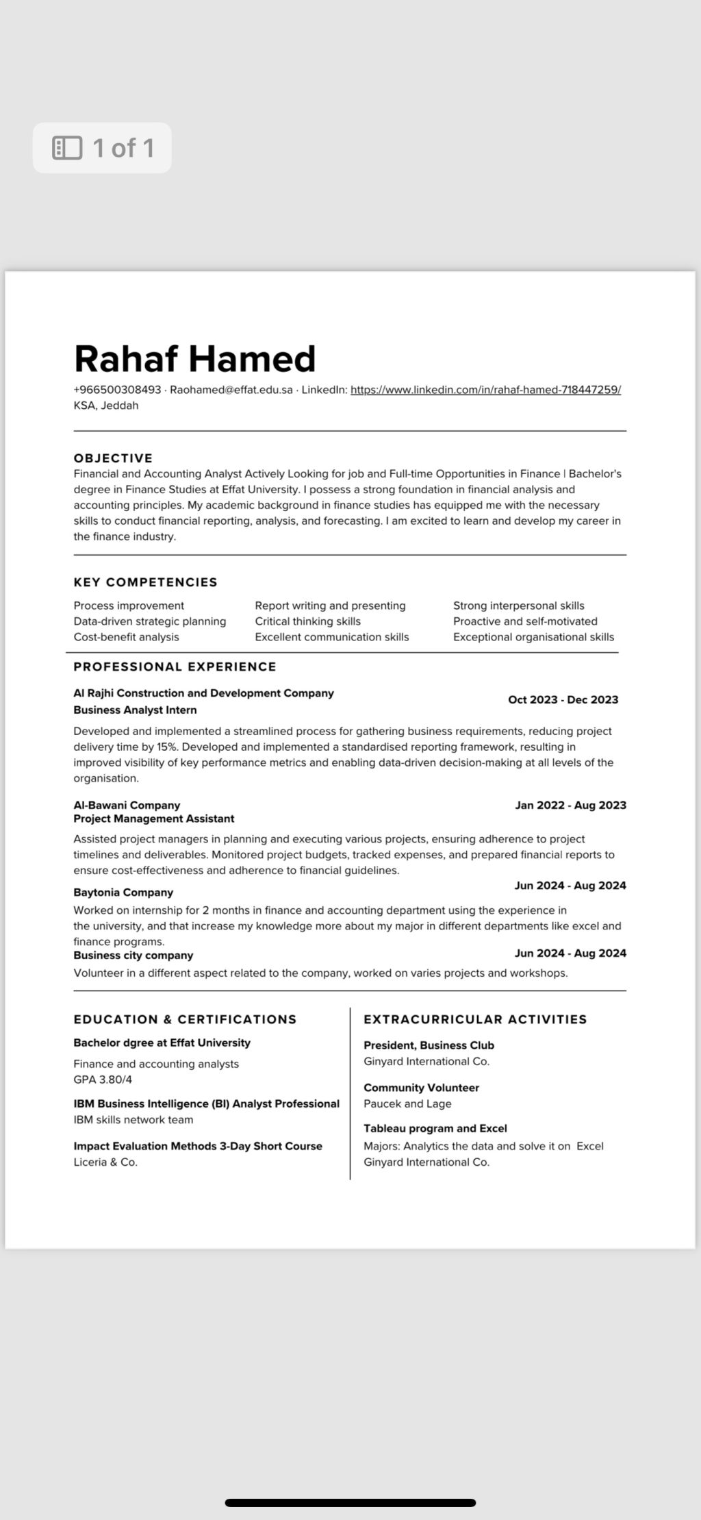 خريجه جامعيه تخصص ماليه ومحاسبه خبرة وتدريب عملي وتطبيقث ابحث عن دوام كامل في مدينة جدة المعلومات مرفقه في CV يرجى التواصل واتساب على الرقم