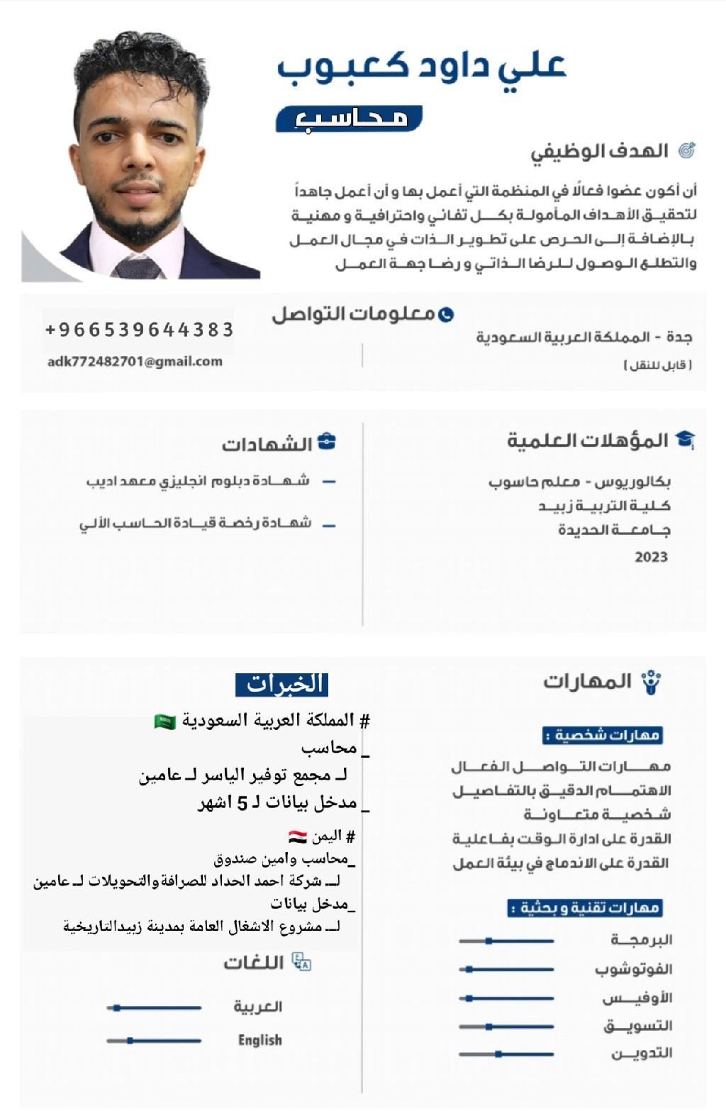 محاسب خبرة ثلاث سنوات بدوام كامل أو عن بعد بكالوريوس في علوم الحاسوب خبرة في مجمعات التوفير مثل أبو 5 وغيرها من القيود الافتتاحية والقيود اليومية مطابقة الحسابات البنكية والموردين اعداد التقارير اليومية والشهرية ادخال البيانات بدقة - رفع الاقرار الضريبي خبرة في برنامج الاكسل - القدرة على التعامل مع البرامج المحاسبية
