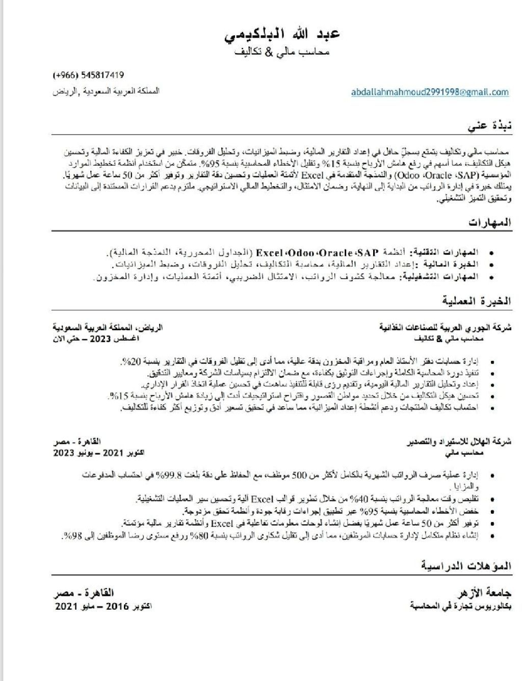 محاسب عام محترف متاح دوام جزئي / بارت تايم / عن بعد مع امكانية الزيارات اليومية أو الأسبوعية حسب احتياج الاتفاق. أقدم إدارة مالية متكاملة تشمل ادخال الزكاة والدخل والضرائب، الاستشارات المالية والتحليل المالي، مراقبة المخزون والكاشير لمطعمك، متابعة مناديب المبيعات وتقارير الأداء، تنظيم الحسابات والقيود اليومية واعداد التقارير الاحترافية، اعداد القوائم المالية. خدمة دقيقة، موثوقة، وتساعدك نمو شركتك