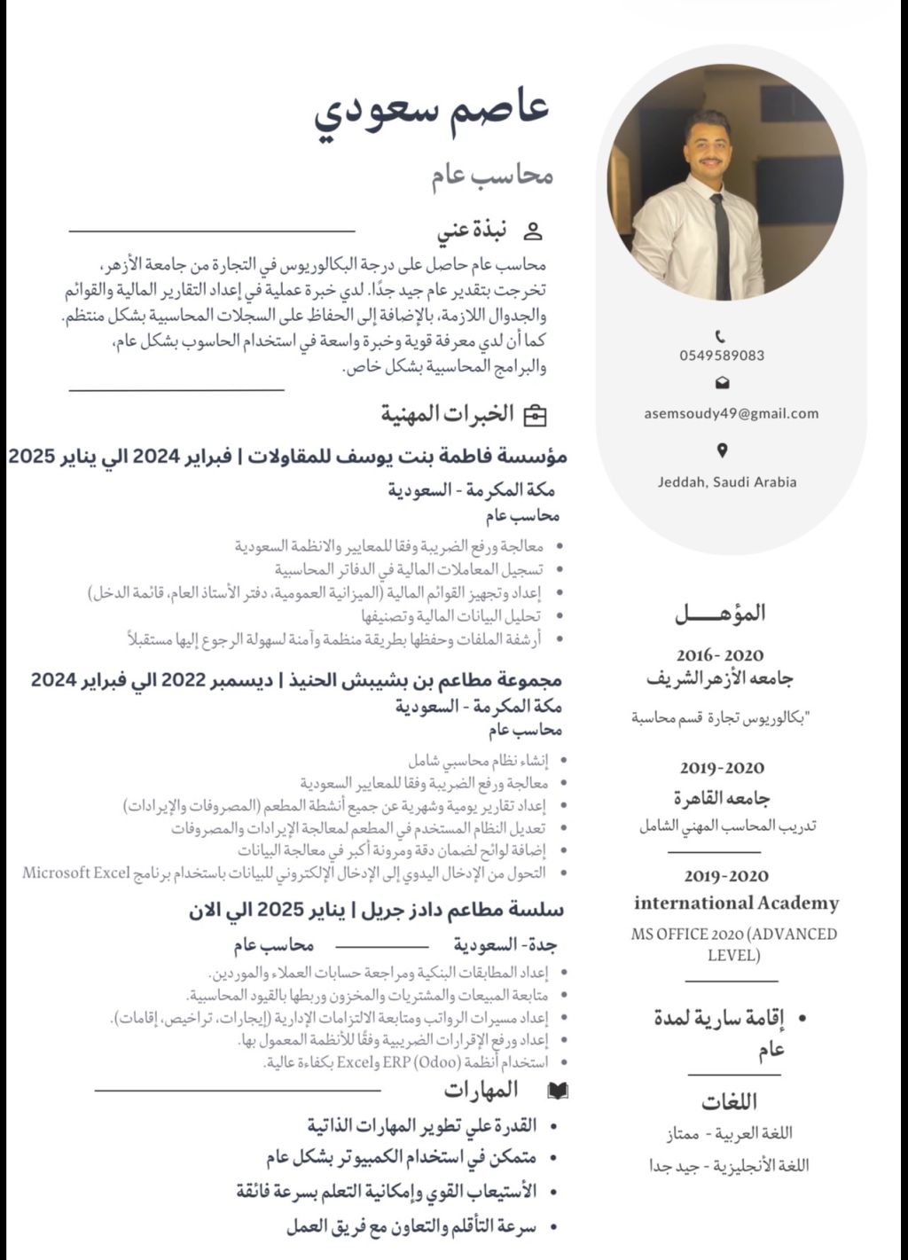 أنا محاسب ابحث عن دوام جزئي أجيد - مطابقة يومية لكشف حساب البنك - مراجعة المديونيات وكشف حساب العملاء العمل علي برامج ERP مثل أوكسو العمل علي برنامج مايكروسوفت ك الأكسيل والوورد - متابعة الصندوق والحولات البنكية - اعداد ورفع الاقرار الضريبي - اعداد ورفع الراوتب علي مدد متابعة مستمرة وتسوية عهد الموظفين متابعة الإيجارات وتجديد الرخص والاقامات والتأمينات الاجتماعيه