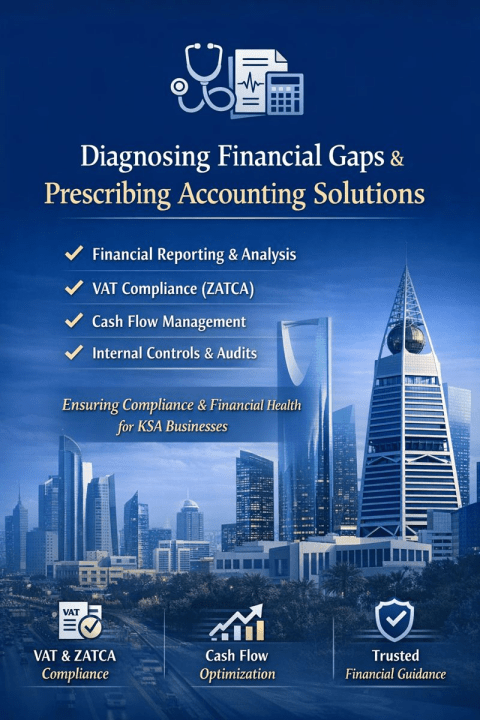 I diagnose financial gaps and prescribe practical accounting solutions for businesses operating in KSA. With strong expertise in financial reporting, VAT compliance (ZATCA) cash flow management, and internal controls, I help organizations maintain financial health. My approach focuses on accuracy, compliance, and sustainable growth. Trusted support for accounts, audits, and financial governance. Qualification