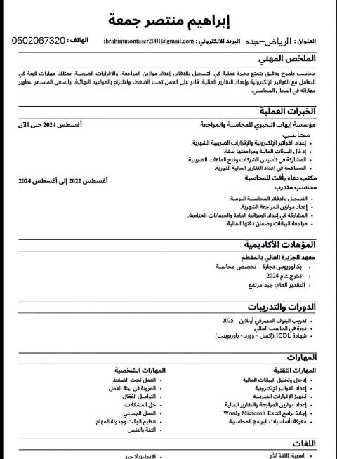 محاسب مصري خبرة سنتين بالمملكة إقامة قابلة للنقل يوجد رخصة قيادة سارية أجيد التعامل مع البرامج المحاسبية erp رفع الاقرار الضريبي ومتابعة حسابات العملاء والموردين