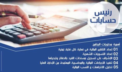 رئيس حسابات - خبرة 11 سنة نقل كفالة - مقيم في المدينة المنورة - اعداد الاقرارات الضريبية والزكوية - إدارة العلاقة مع البنوك والمحاسب القانوني والجهات التعاقدية - اعداد التقارير الدورية للإدارة - اعداد الميزانية والموازنة السنوية ومراقبتها وضبط النفقات لضمان الاستخدام الأمثل - حسابات العملاء والموردين - مسير الرواتب - تسوية الحسابات البنكية - التعامل مع المنصات الحكومية - مراقبة المخزون - الانشاءات