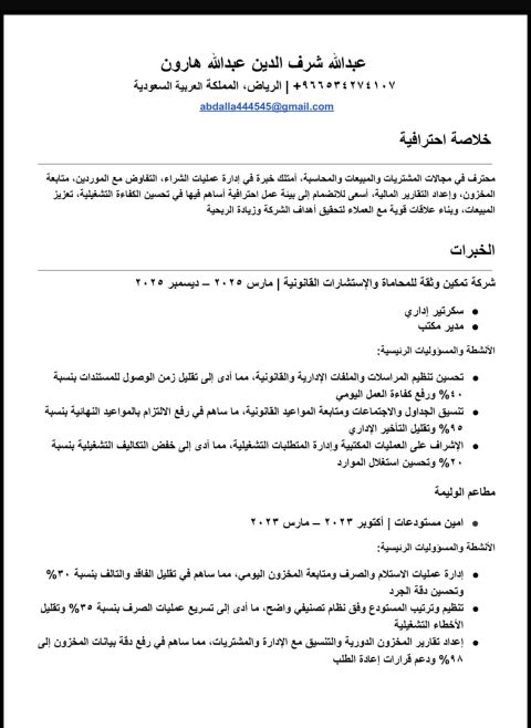 Accountant and administrative officer, fluent in English, with experience working on 4 ERP accounting systems, inventory management and control, journal entries, and financial reporting. Highly proficient in Microsoft Office (Word and Excel) Founder and content writer, specialized in SEO for both an Arabic and a foreign website. I also hold a valid driving license