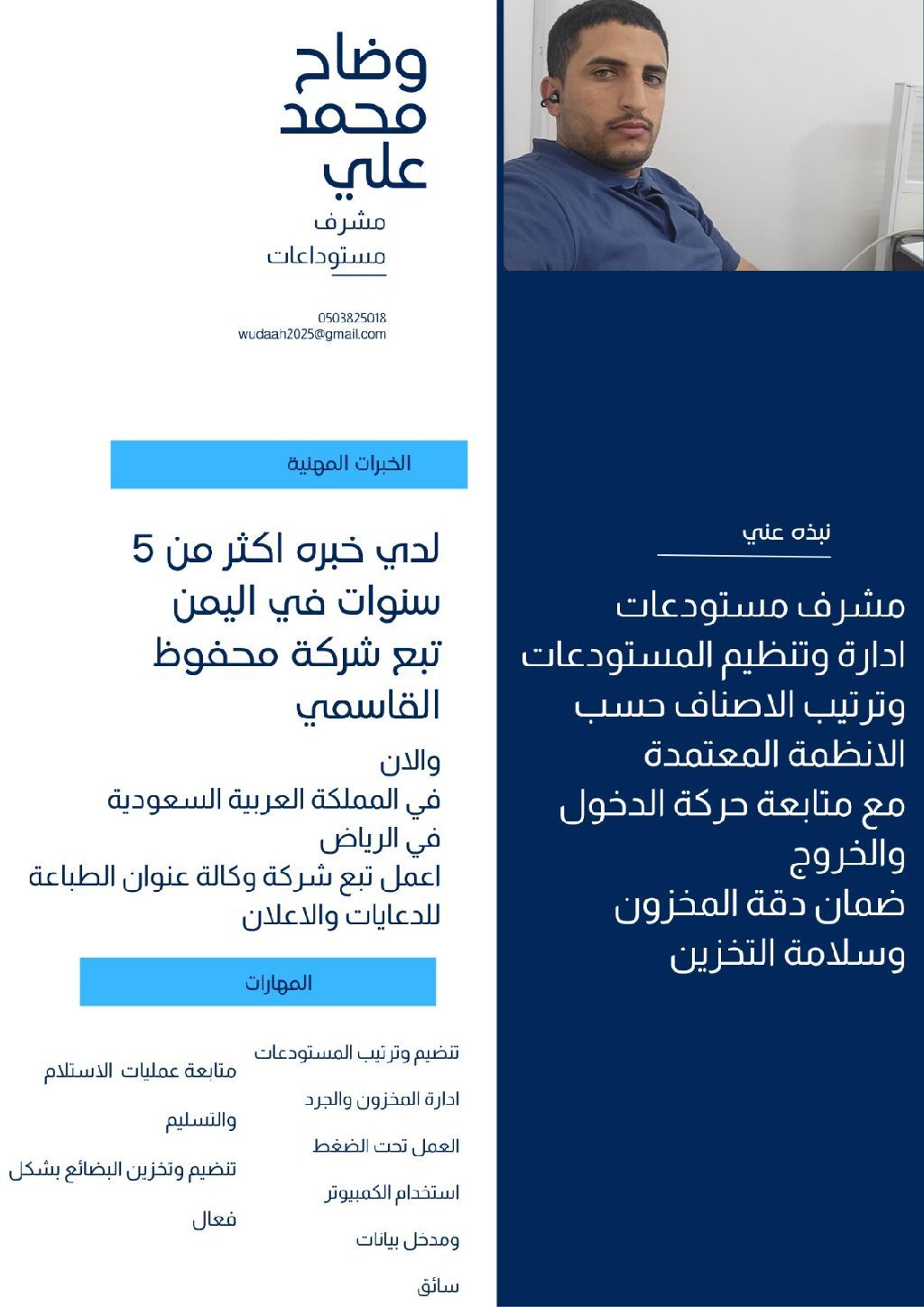 ابحث عن عمل مشرف مستودعات أو مدخل بيانات، عندي خبرة أكثر من 7 سنوات