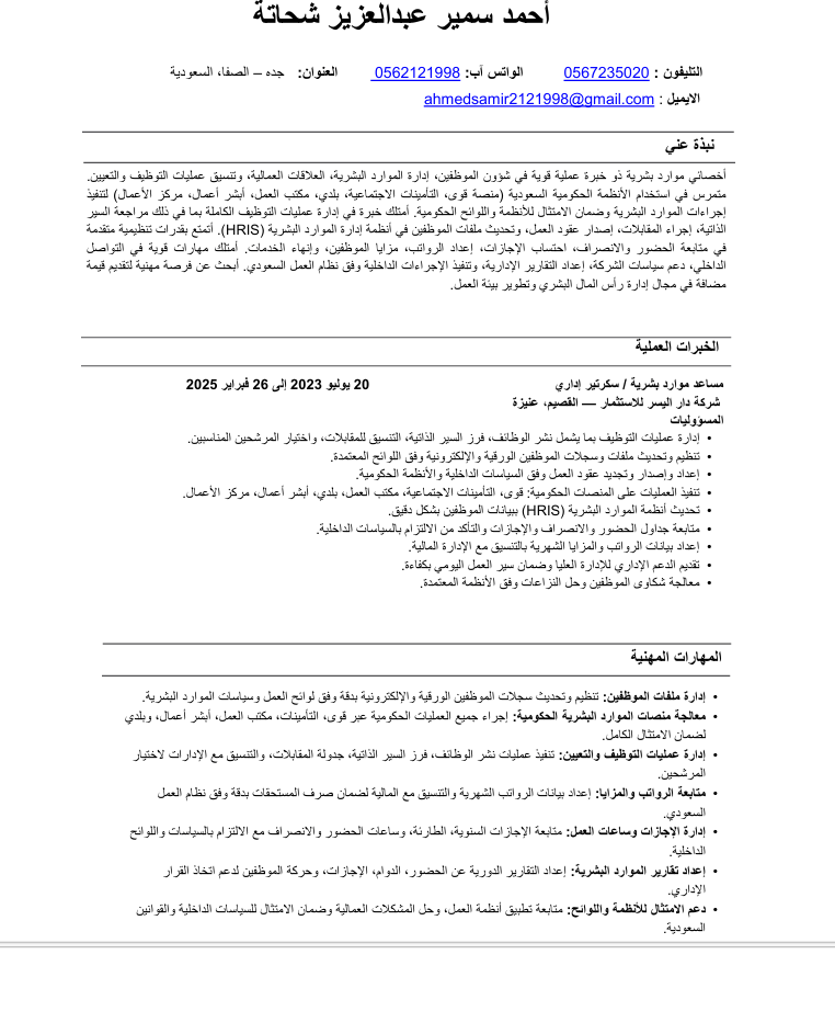 باحث عن عمل بدوام جزئي أو عمل عن بعد - موارد بشرية / أعمال ادارية موظف موارد بشرية ومساعد اداري، لدي خبرة في شؤون الموظفين والتوظيف وإدارة الملفات واستخدام الأنظمة الحكومية، بالاضافة الى اعداد العقود واعداد التقارير. ابحث عن فرصة عمل بدوام جزئي في جدة أو عمل عن بعد في مجال الموارد البشرية أو الأعمال الادارية أو أي مجال مناسب. أتميز بالدقة في العمل والتنظيم والقدرة على انجاز المهام بكفاءة