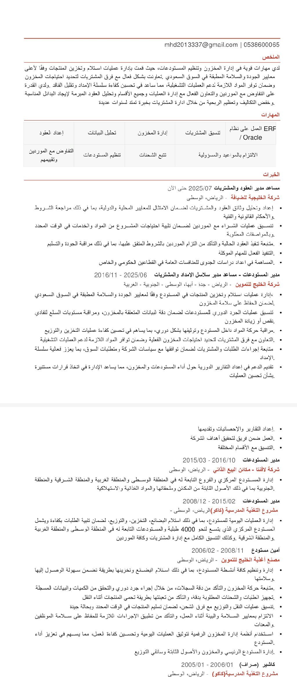 ابحث عن عمل خبرة مشتريات ومستودعات ودعم لوجستي خبرة بشغل بشركات الاعاشة ولدي قاعدة موردين ومصانع كبار بالسوق مواد غذائية بلاستيك وغيرها