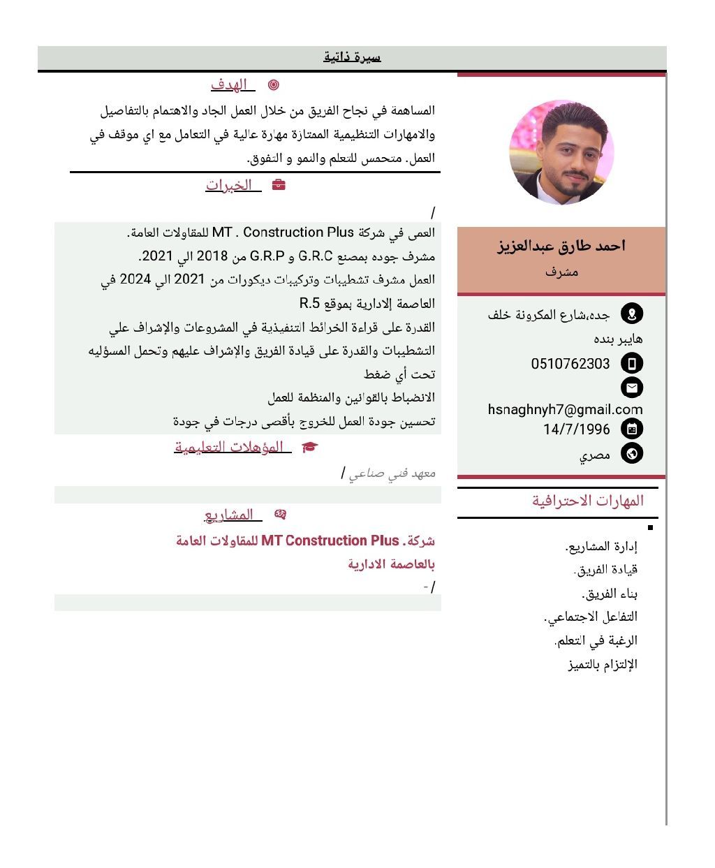 مشرف في مجال أعمال الديكورات وإدارة المشاريع وقيادة الفريق وبناء الفريق والتفاعل الاجتماعي والرغبة في التعلم والالتزام بالتميز