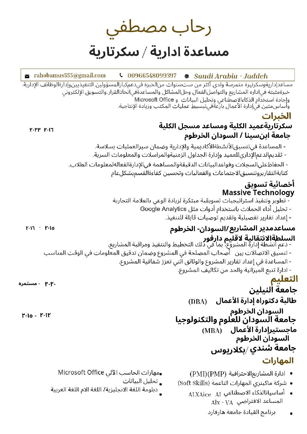 أنا رحاب خريجة إدارة أعمال ولدي ماجستير MBA وخبرة في الإدارة والسكرتارية والتسويق لأكثر من ستة سنوات مقيمة في السعودية جدة