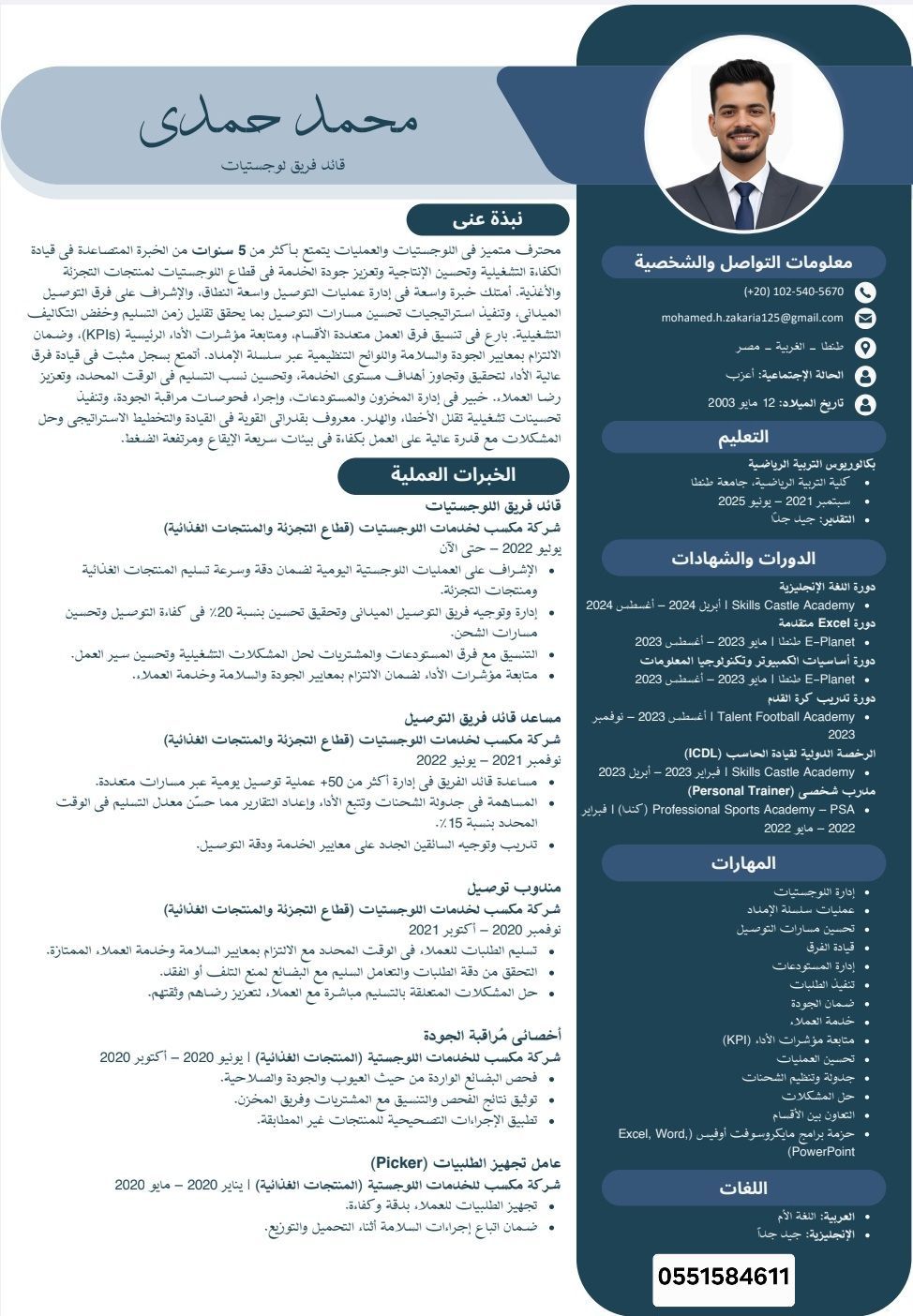 ابحث عن وظيفة إدارة اللوجستيات عمليات سلسلة الإمداد قيادة الفرق تحسين مسارات التوصيل إدارة المستودعات تنفيذ الطلبات نسمان الجودة خدمة العملاء متابعة مؤشرات الأداء (KPI) الحسين العمليات جدولة وتنظيم الشحنات حل المشكلات التعاون بين الأقسام. حزمة برامج مايكروسوفت أوفيس (Excel, Word (PowerPoint اللغات العربية اللغة الأم الانجليزية جيد جدا