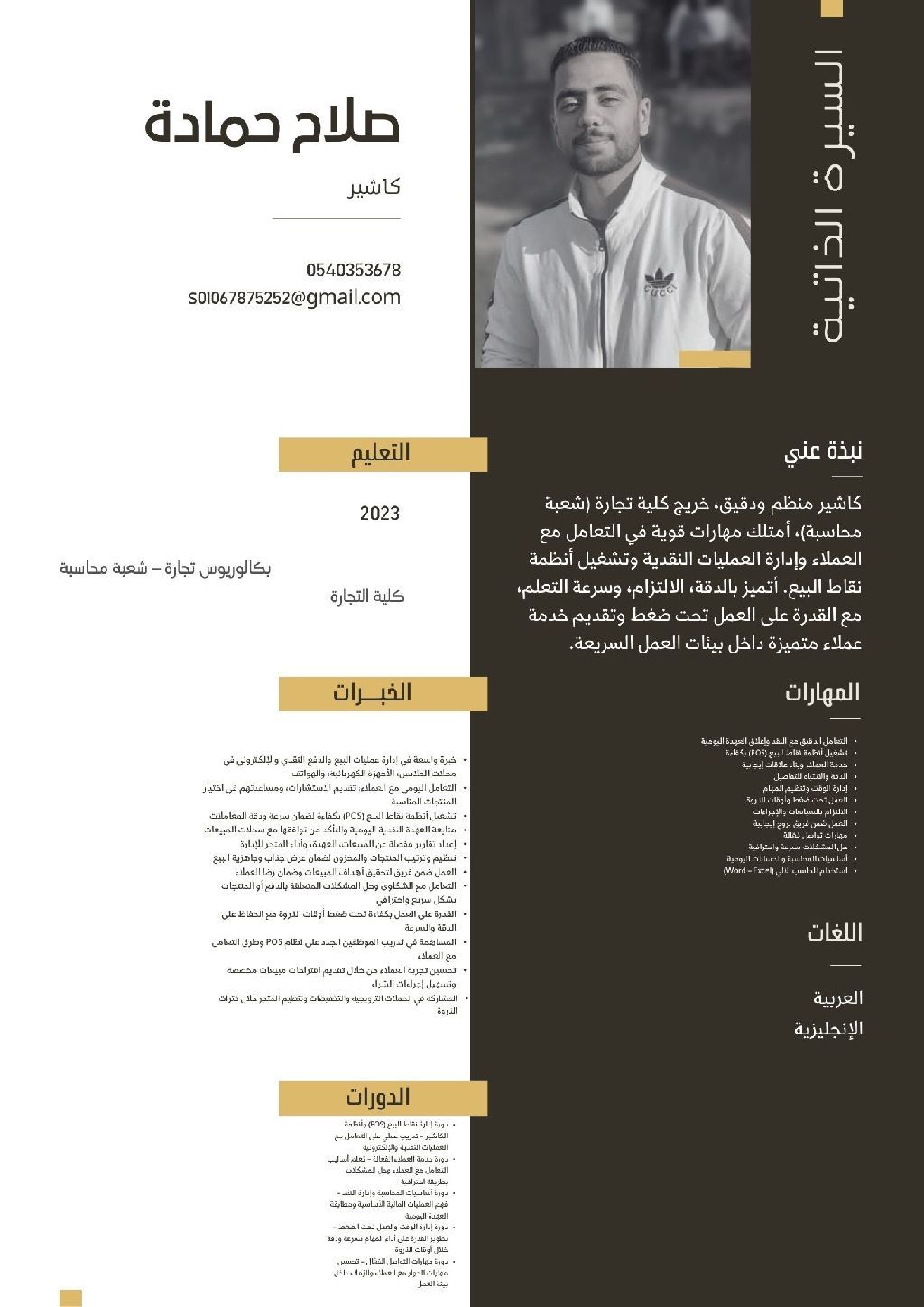 أنا صلاح، خريج تجارة (شعبة محاسبة) وامتلك خبرة في المبيعات والكاشير بمحلات الملابس، الاجهزة الكهربائية، والهواتف. متمكن في التعامل مع العملاء، إدارة النقد، وتشغيل أنظمة POS بكفاءة عالية. جاهز للعمل فورا بدوام كامل أو مرن في جدة. للتواصل