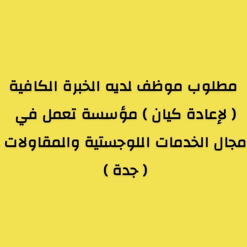 مطلوب موظف لديه الخبرة الكافية في (اعادة كيان) مؤسسة تعمل في مجال الخدمات اللوجستية والمقاولات، يشترط أن يكون لديه خطة واضحة ومدروسة، ولديه خبرة سابقة. التواصل معنا. جدة حي الرويس بجوار ميدان الراية