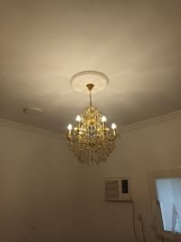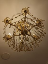 ثريا كريستال فاخرة 5 لمبات، لون ذهبي، بحالة ممتازة ومشتغلة، الكريستال كامل بدون كسور 80 ريال