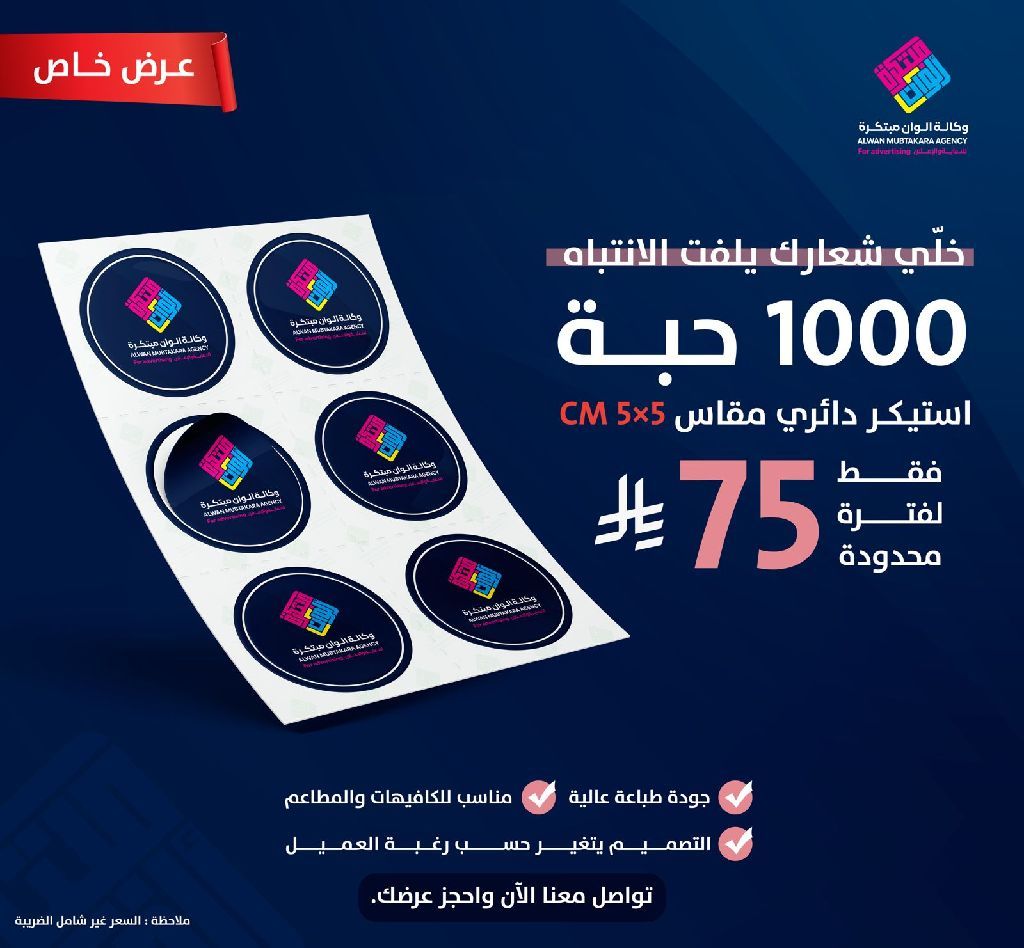 عرض - خاص طباعة ملصقات توزيع الكافيهات والمطاعم بجودة عالية وسعر مناسب جدا لفترة محدودة