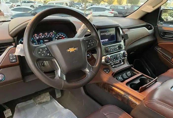 Tahoe 2020, manual transmission, gasoline, 158,000 km, price 55,000 SAR. Full specifications: 8 cylinders, 5.3L engine, refrigerator, upholstery, fingerprint, front airbags, ABS brakes, central locking, ESP stability system, seat belts, EBD brake force distribution, electronic brake assist, traction control (TRC), sensor control, rear AC vents, steering control, cruise control, electric control, electric resistance, voice commands.