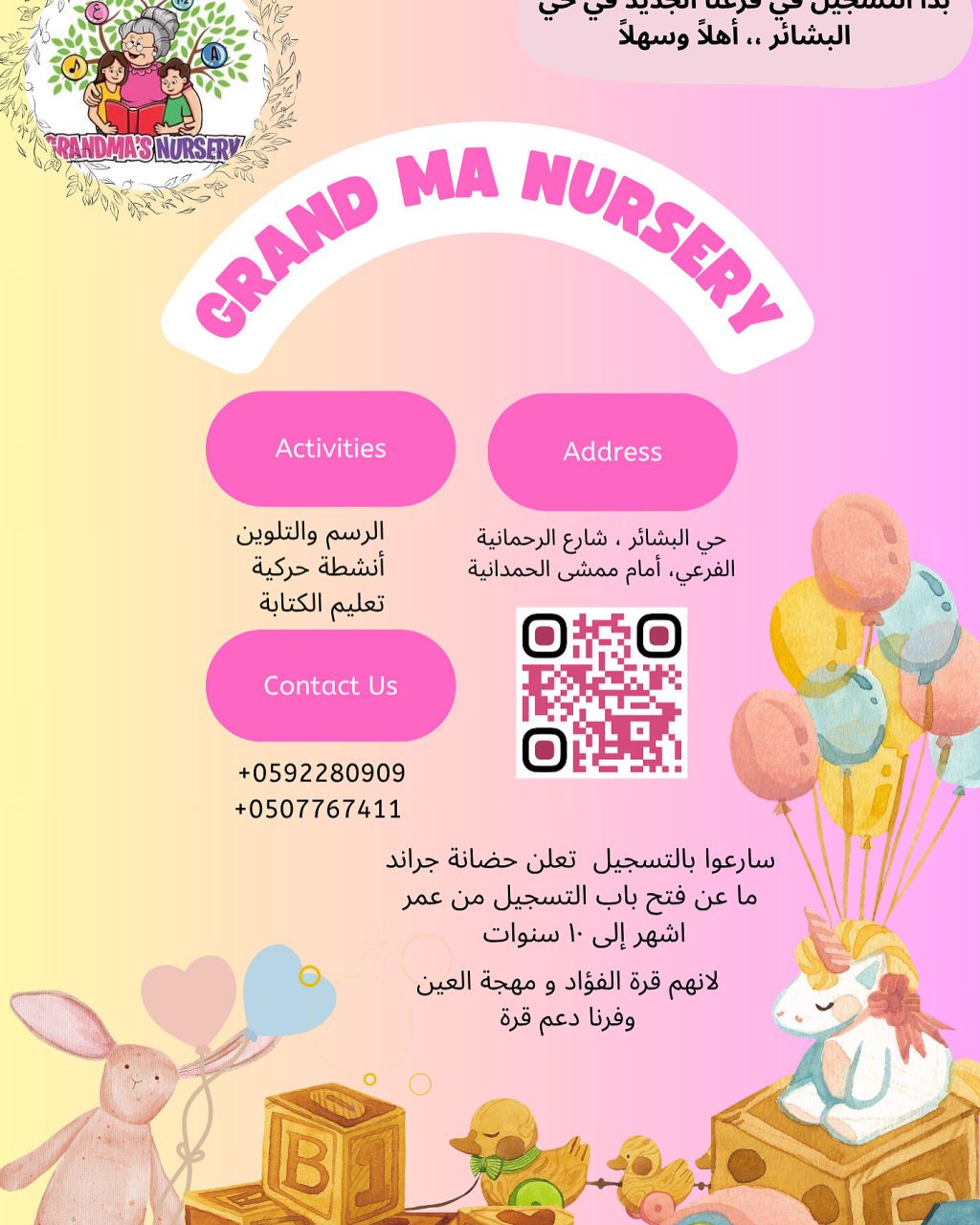 مركز ضيافة للاطفال في حي البشائر أمام ممشى الرحمانية يخدم طفلك من عمر أشهر الى 10 سنوات تعليم وتر فية وتنمية مهارة أرجو التواصل