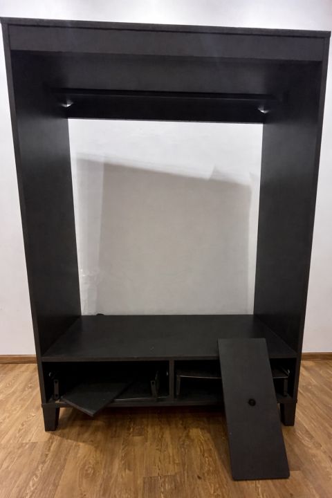 خزانة ملابس بلون رمادي غامق، بقسم تعليق واسع للملابس مع درجين سفلية تحتاج فقط تركيب الخامة قوية وثابتة وثقيل، والحالة ممتازة مع استخدام بسيط جدا. السعر قابل للتفاوض)