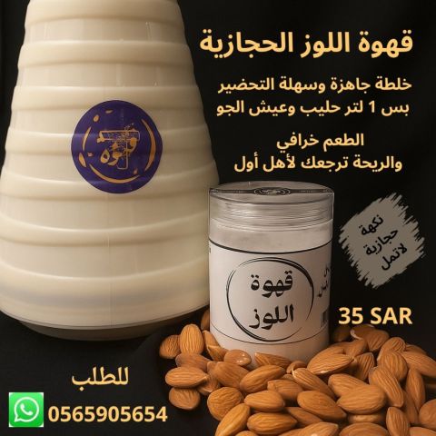 دام أن الشتاء قرب جمعاتنا ما تكمل الا مع قهوة اللوز الحجازية الخلطة التي تجمع بين الطعم الفاخر والسهولة كل الى تحتاجة لتر حليب وبالحظة تعيش نكهة أهل أول سعر العلبة 35 ريال في مدينة جدة ويمكن التوريد لخارج جدة لكمية لا تقل عن 12 علبة