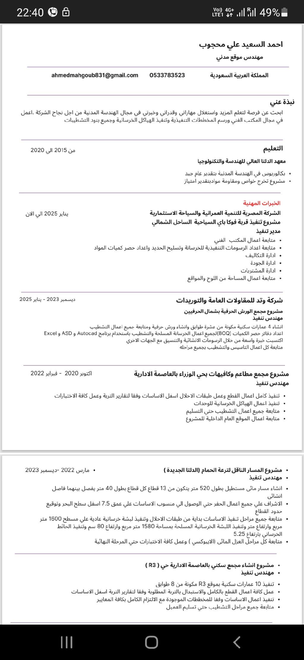 مهندس مدني موقع خبرة 6 سنوات بأعمال الخرسانات والتشطيبات مسجل بالهيئة جاهز للعمل