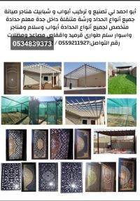أبو أحمد لجميع أعمال الحدادة والاسمنت بورد خارجي وداخلي ملاحق ووجهات فلل أسقف داخل مدينة جدة أبواب شبابيك هناجر درب زين أعمال خيام بيوت شعر مظلات جلسات سواتر. بوابات سحاب شبك حماية مكيفات. قواعد خزانات حلوق عأيدي حلوق مجلفن ضد الصدأ صيانة هناجر فك تركيب جميع مستلزمات الحدادة