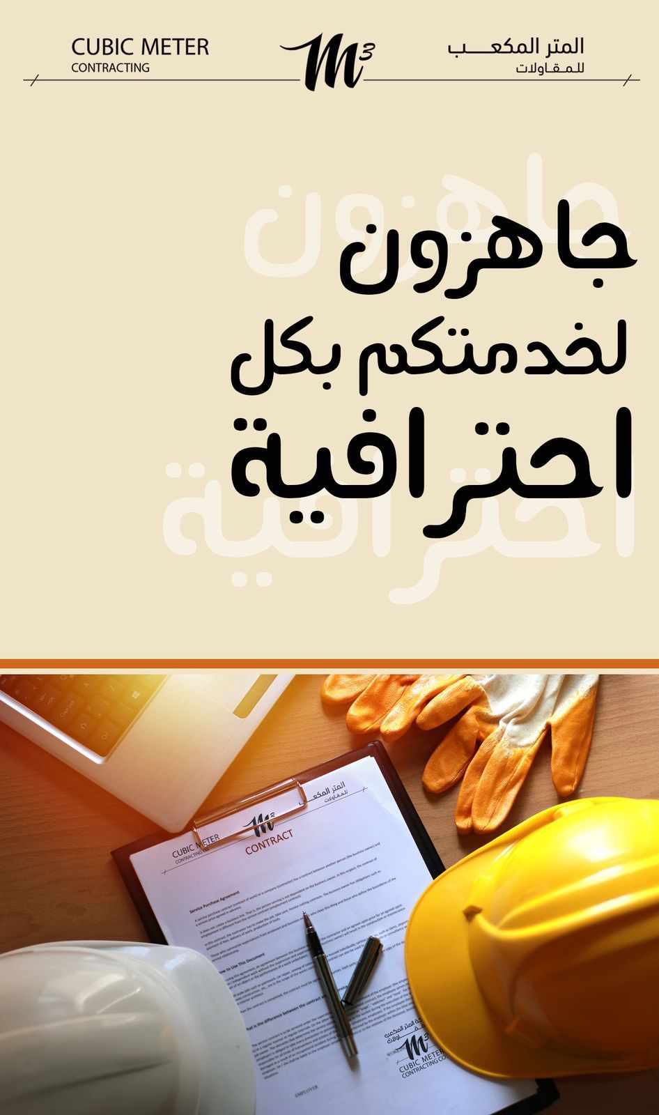 استشارة هندسية مجانية لمدة أسبوع فقط هل تفكر تبدأ مشروع تبغى ترمم، تشطب، أو تبني من الصفر الآن شركة المتر المكعب للمقاولات جاهزين نخدمك بكل احترافية وجودة عالية. نخدمك من أول فكرة حتى تسليم المفتاح تصميم معماري وهندسي متكامل اشراف هندسي شهري أو بنظام الزيارات تنفيذ أعمال العظم تنفيذ أعمال التشطيب الكاملة ترميمات سكنية وتجارية (شقق - فلل - معارض - مكاتب) فريق هندسي مختص، متابعة مستمرة، أسعار مدروسة