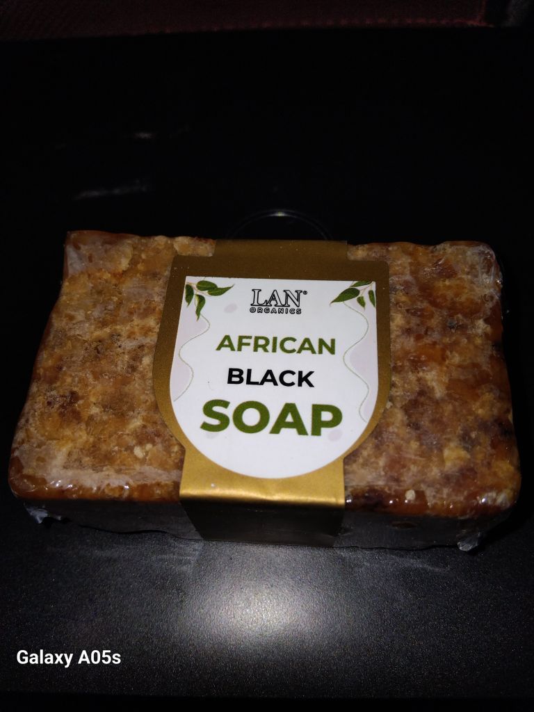Here's one description for each product in English and Arabic LAN Organics African Black Soap English Unleash the ancient secret to radiant skin with LAN Organics African Black Soap Handcrafted with nature's finest ingredients like shea butter, cocoa pod ash, and plantain, this authentic soap is your go - to for deep cleansing, gentle exfoliation, and a visibly healthier glow. Experience the d