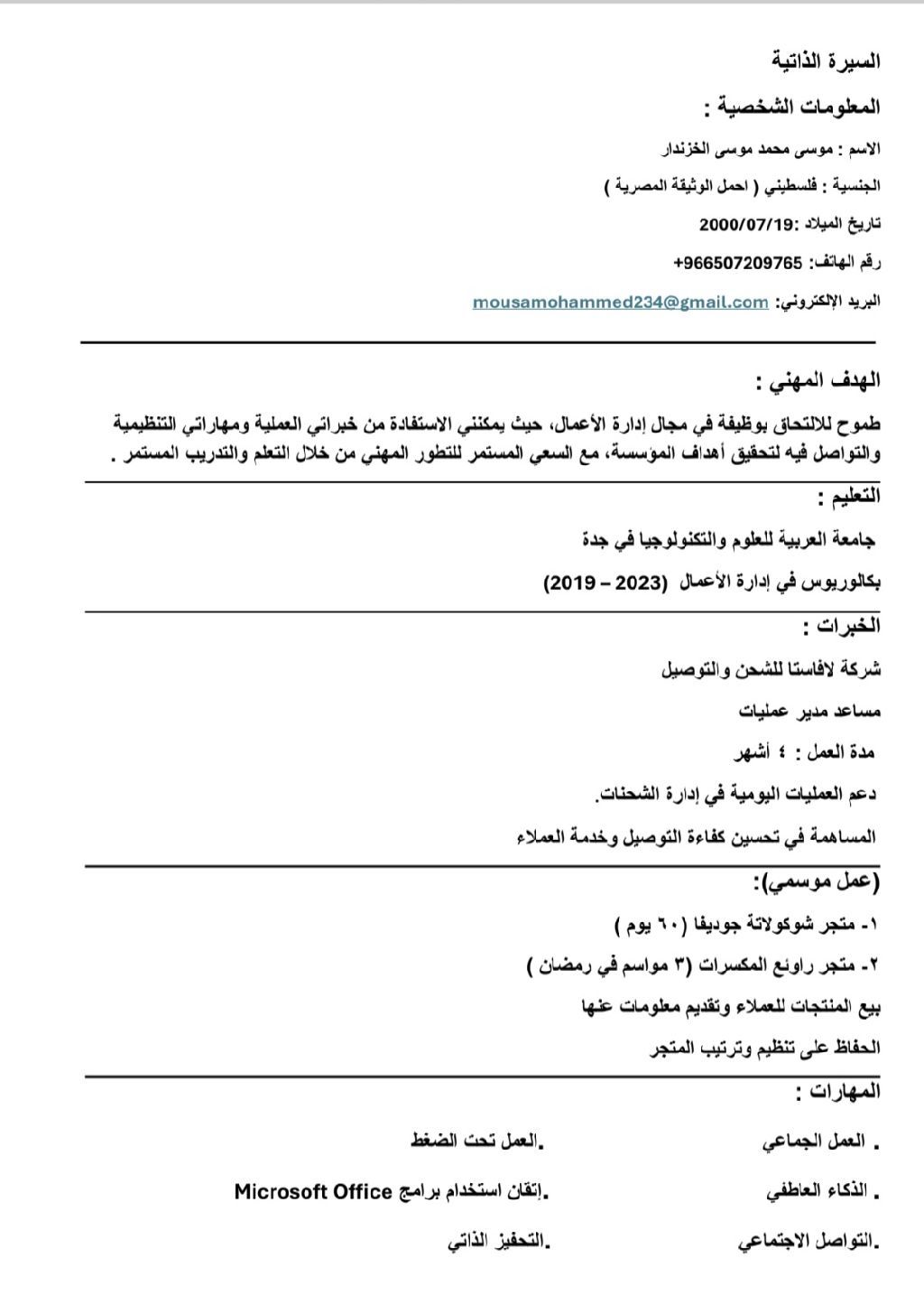 ابحث عن عمل - سريع في التعلم - متعاون مع الفريق - تخصص إدارة أعمال