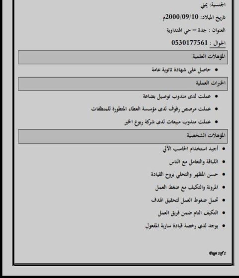 أنا خريج جامعييمني، أجيد اللغة الانجليزية. لدي أربع سنوات من الخبرة في العمل كأمين صندوق باستخدام أنظمة بيع متنوعة في متاجر الملابس والمطاعم، وسنتان من الخبرة في استقبال الفنادق. أجيد استخدام برامج مايكروسوفت أوفيس، واعمل بكفاءة تحت الضغط، وأتعلم بسرعة. لدي اقامة سارية وقابلة للتحويل. ابحث عن عمل في بقالة أو مطعم