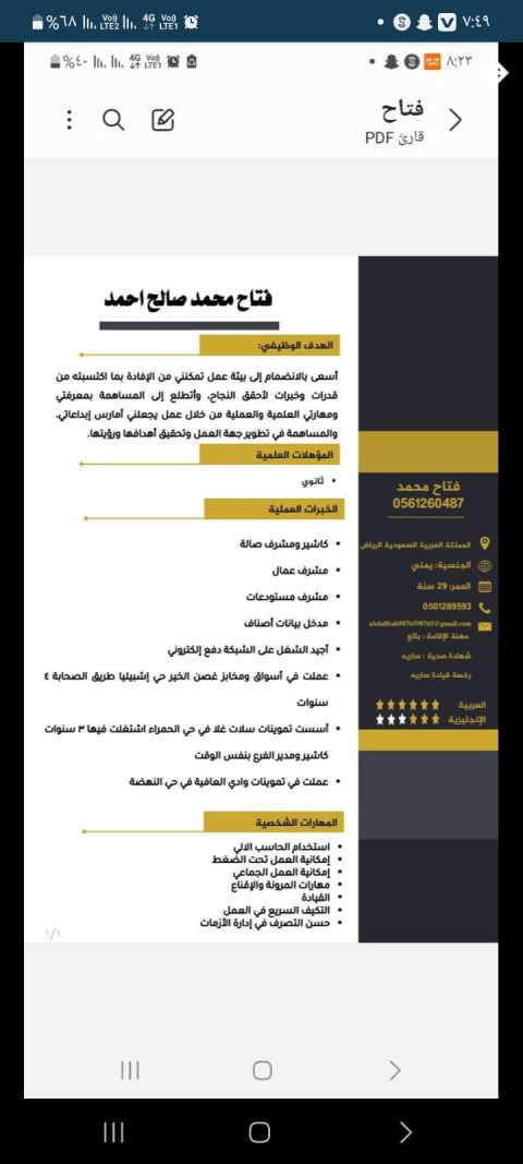 أنا يمني مقيم في المملكة العربية السعودية، لدي خبرة أكثر من 7 سنوات في مجال العمل ككاشير والمحاسبة، مع مهارة عالية في التعامل مع العملاء وإدارة الصندوق وتنظيم الحسابات بدقة وأمانة. كما امتلك خبرة عملية في اعداد الاكلات الشعبية الجنوبية، خصوصا اكلات أهل عسير مثل العريكة، التصابيع، وخبز التنور، مع معرفة كاملة بطريقة التحضير والتقديم والمحافظة على الجودة والنظافة. أتميز بالالتزام والانضباط في العمل