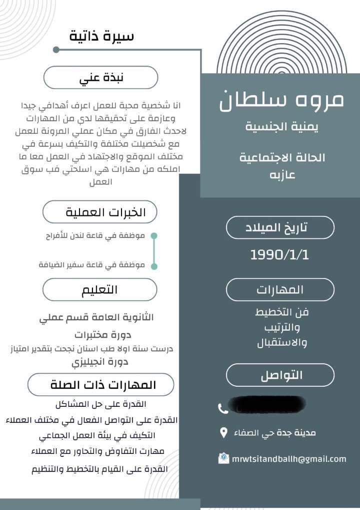 أجيد العمل ك مندوب مبيعات تسويق وأيضا عملت سابقا في قسم الحلويات والمقبلات وكافة الأطعمة لدى الخبرة الكافية بإذن لله ولتفاصيل أكثر فالصورة CV