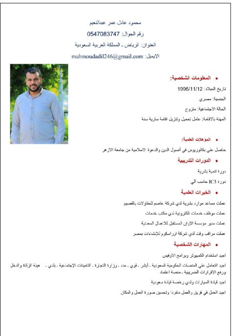 أحمد المصطفى سوداني الجنسية السن 32 سنة خريج جامعي إقامة سارية ورخصة قيادة سارية ابحث عن عمل