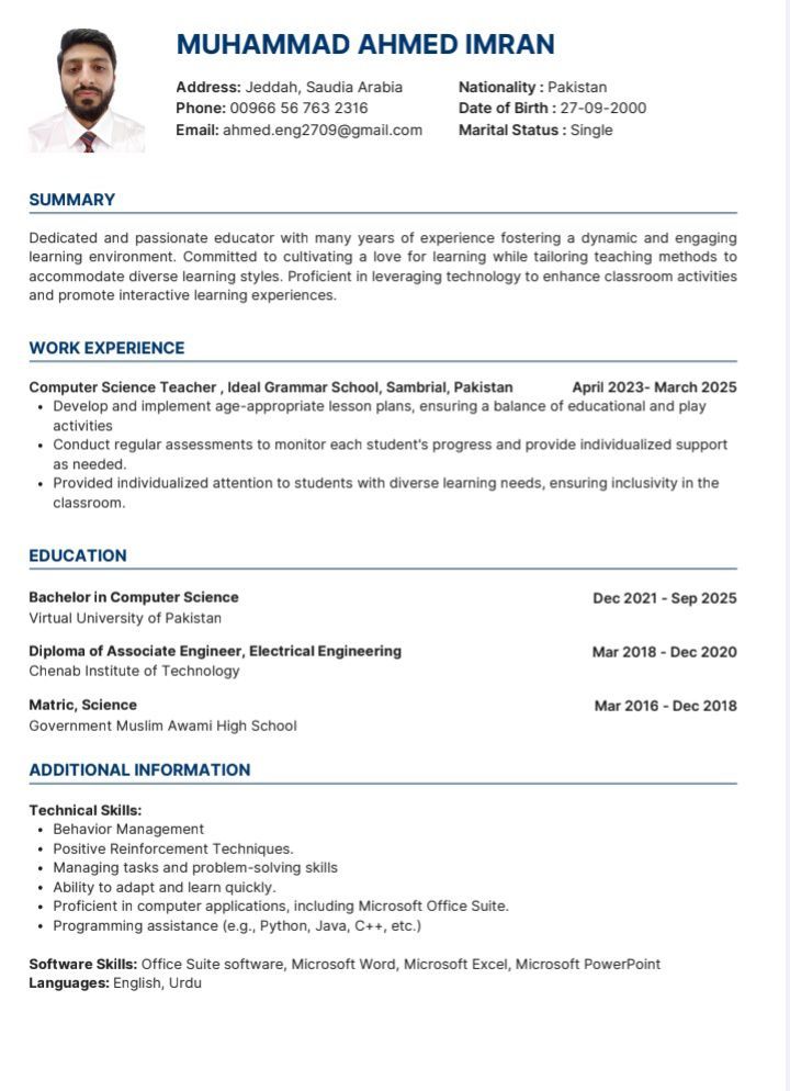 A detail - oriented and organised professional with experience in managing the company account and customers, maintaining digital records, and preparing reports in line with company policies. Skilled in coordinating with multiple departments to ensure accurate and timely data collection and communication