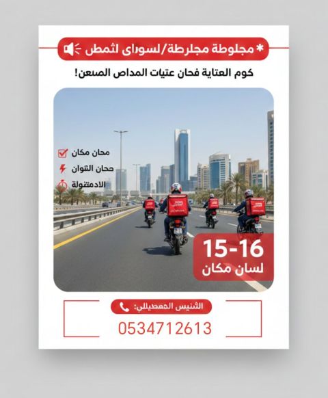 عاجل فريق من 15 - 16 سائق توصيل مرخص جاهز للعمل هل تخطط لاطلاق أو توسيع شركة توصيل طعام في المملكة العربية السعودية لدينا فريق مكون من 15 - 16 عاملا محترفا متاحون فورا، وجميعهم يحملون رخصة قيادة دراجات نارية سعودية سارية. ابدأ عملياتك فورا دون تأخير للتواصل الموقع المملكة العربية السعودية