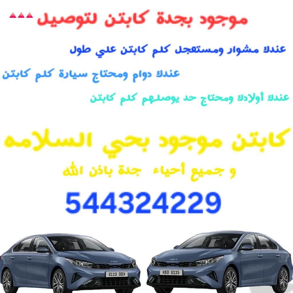توصيل مشاوير داخل جدة وخارجها جدة - وضواحيها توصيل دوامات - مدارس - جامعات - مستشفيات - مشاوير يومية توصيل طلبات - مشاوير خاصة - مشاوير دوام شهري أو أسبوعي التزام بالمواعيد / سيارة نظيفة / أسعار مميزة جدا للتواصل واتساب أو اتصال